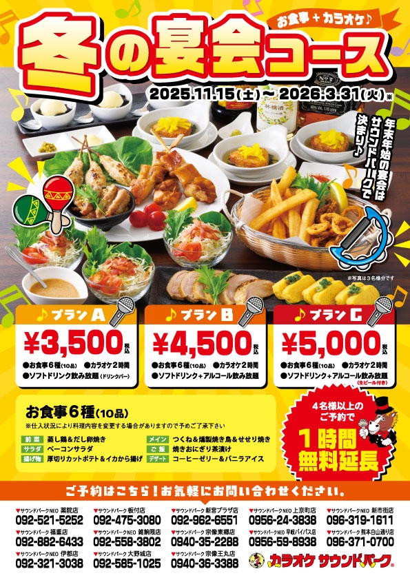 ■時間延長は部屋料金及び飲み放題料金を別途請求させていただきます。